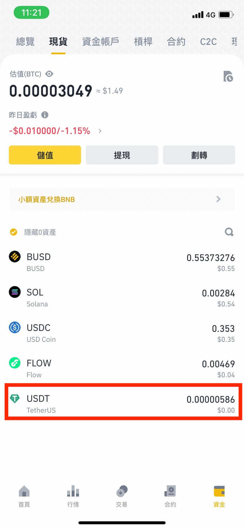 第二步、台幣換成USDT後就可以準備將錢轉到幣安了,先來取得錢包序號。