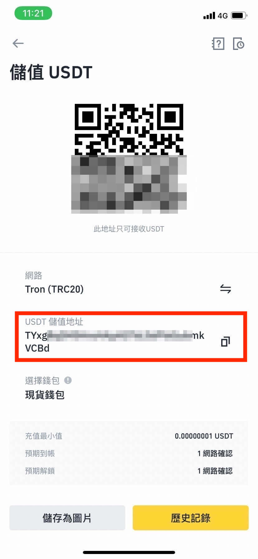 用TRC20協議轉的錢大概5-15分鐘就會送達。目前MAX是0手續費。轉過去之後就可以用幣安來購買加密貨幣囉。