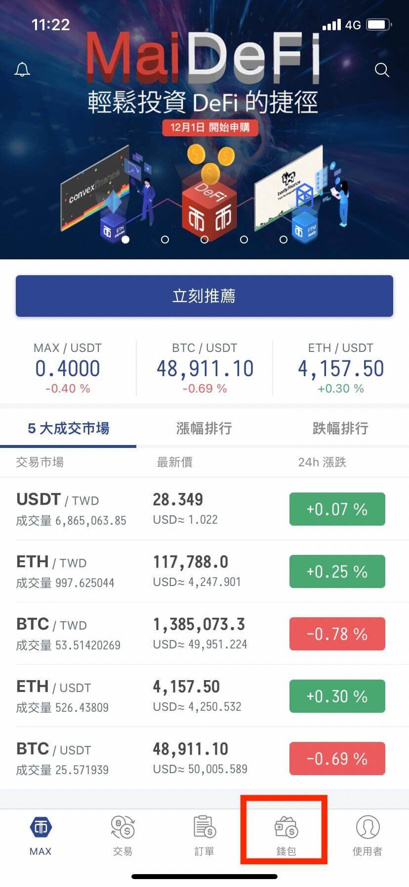 6、拿到錢包序號後>回來打開MAX的APP>點選右下角的錢包