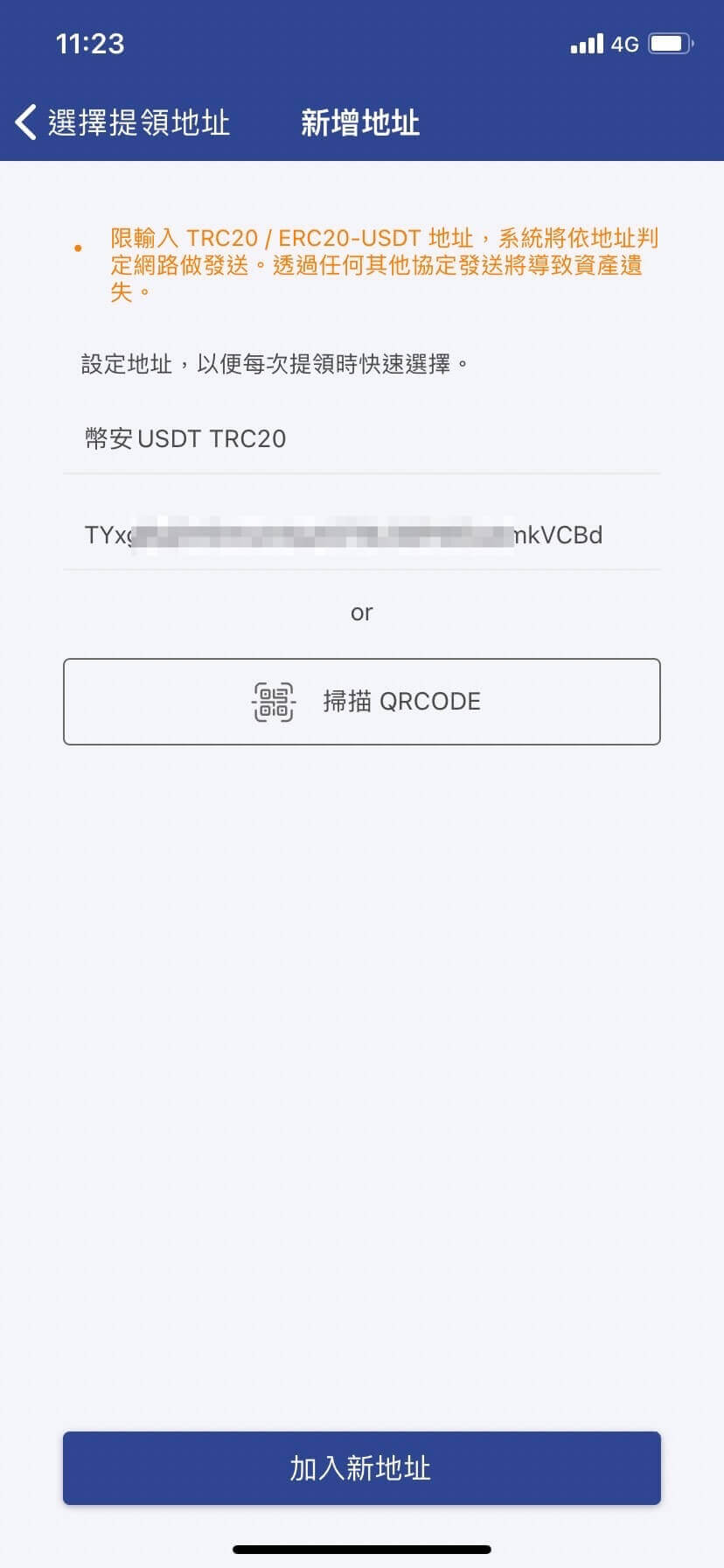 點選右上方的加號>錢包名稱你可以自己取,下面貼上剛剛在幣安複製的錢包序號>點擊下方加入新地址就完成了。