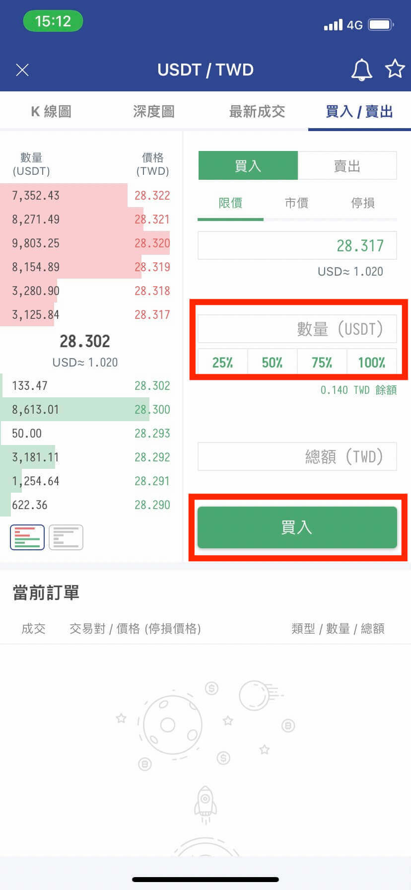2、進到買賣畫面>輸入要購買的數量>點選買入即可